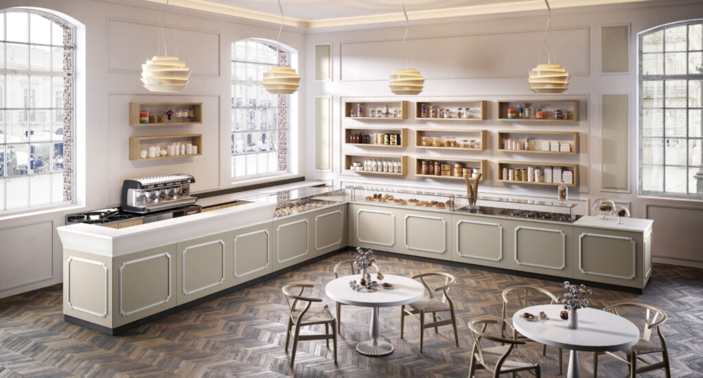 Manzoni Group Srl ad Ancona progetta e realizza arredamenti su misura per gelaterie, pasticcerie, bar, caffetterie e gastronomie, combinando design, ergonomia e praticità.