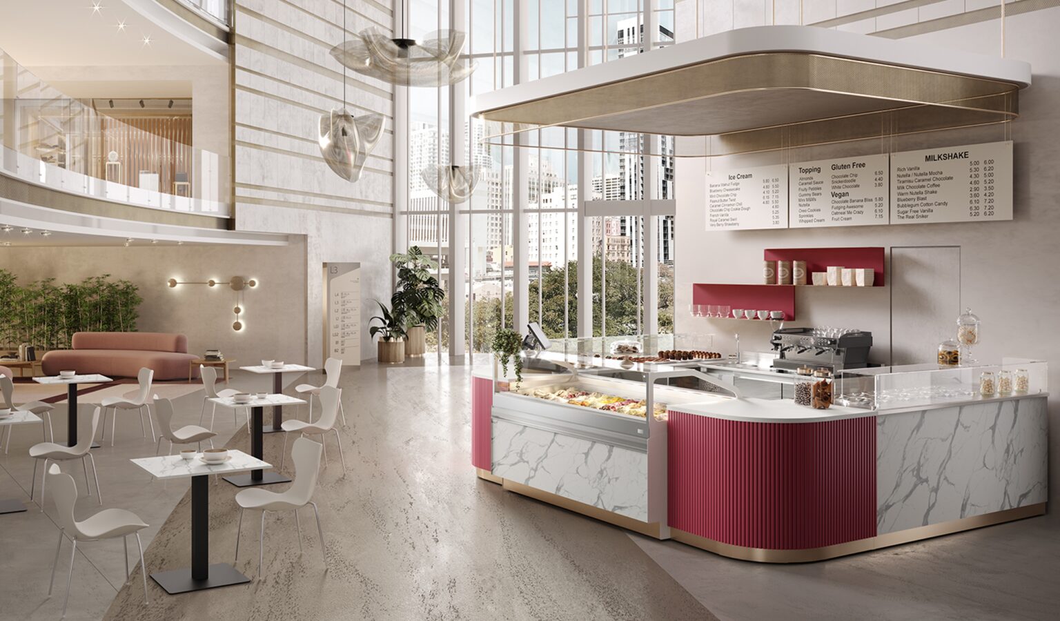 Il banco gelato è il cuore pulsante di ogni gelateria: deve essere accattivante, funzionale e garantire la massima visibilità dei prodotti. Progettiamo soluzioni modulari e su misura, con vetrine refrigerate di ultima generazione e un design studiato per valorizzare i tuoi gusti artigianali.