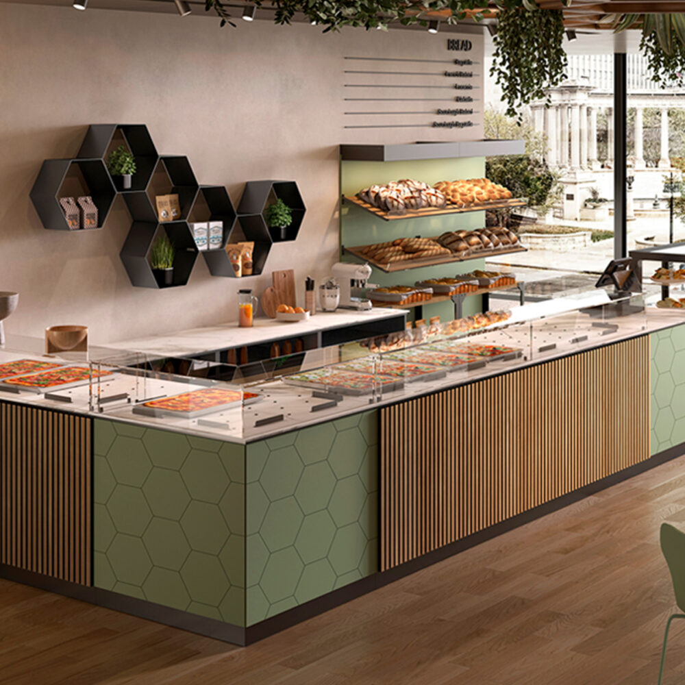 Dal bancone bar alla zona caffetteria, realizziamo arredamenti che uniscono stile e funzionalità. Ogni dettaglio è studiato per migliorare il flusso di lavoro e creare un ambiente accogliente, con banchi refrigerati, retrobanchi attrezzati e vetrine per la piccola pasticceria.